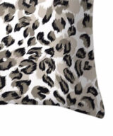 De voorkant van deze kussenhoes heeft een luipaard print, de achterkant is effen wit.