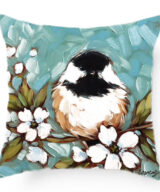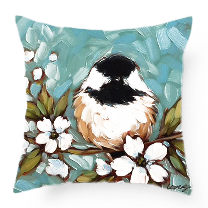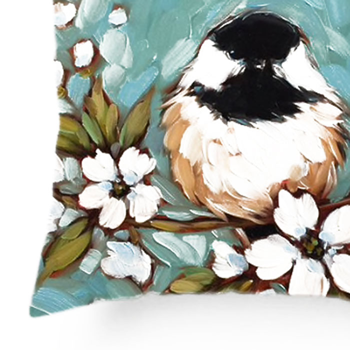 Deze kussenhoes van polyester heeft een eenzijdige print van een mees, de achterkant is egaal wit.