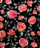 De kussenhoes heeft aan de voorkant een print van rozen op een zwarte achtergrond en is aan de achterkant effen naturel.