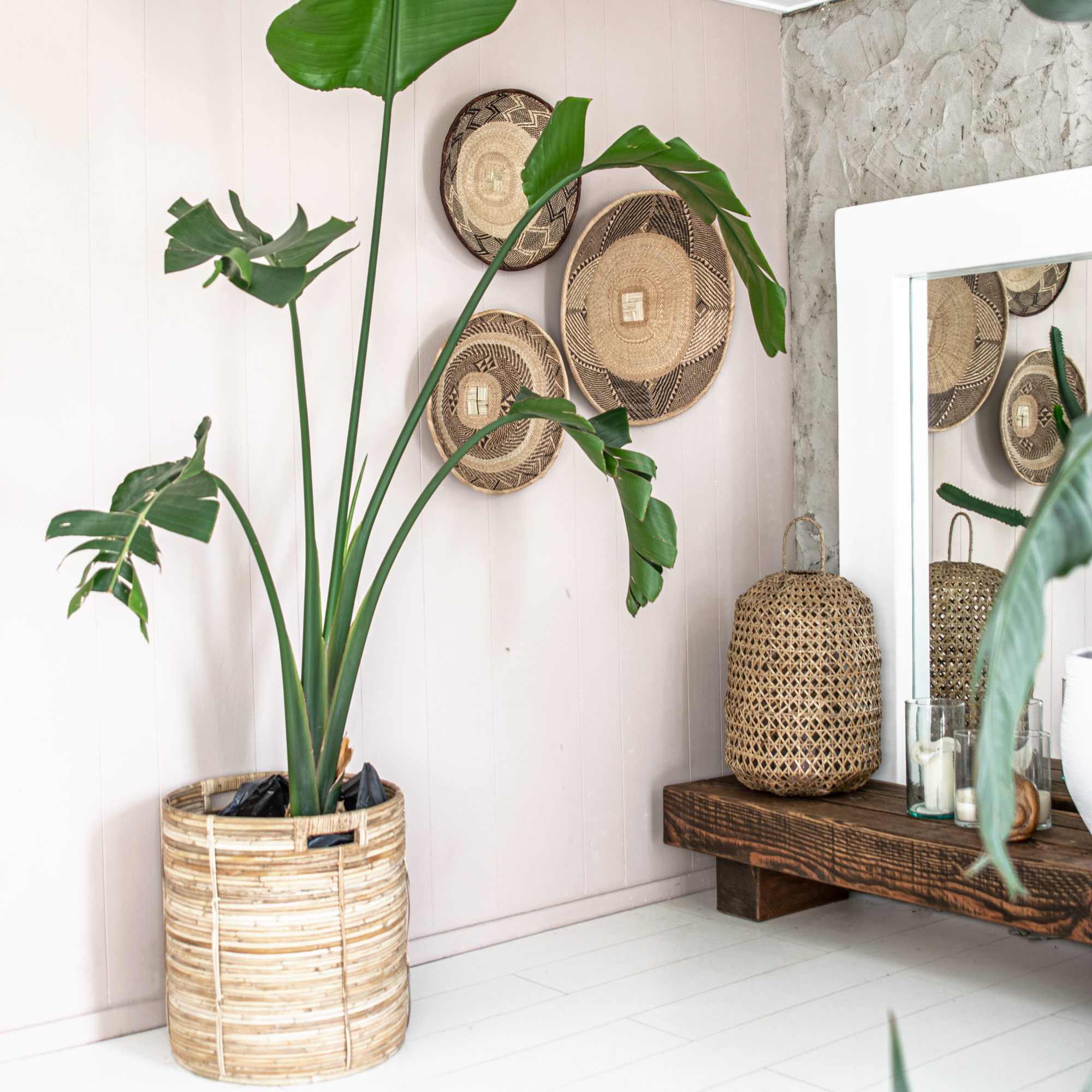 Deze prachtige manden zijn met de handgeweven. Komen oorspronkelijk uit het afgelegen district Binga, en worden gemaakt door de Bantonga stam. Tonga vrouwen maken gebruik van traditionele weeftechnieken. De manden worden gemaakt van natuurlijke materialen zoals wilde grassen, wijn- en palmbladeren. De manden zijn eigenlijk bedoeld om granen te wannen. Wannen is een antieke methode uit de landbouw om graan te zuiveren van kaf door het in de wind op te werpen en te laten vallen.