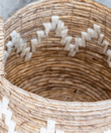 Deze stijlvolle mand, handgemaakt van gedroogd bananenblad heeft een mooie zigzag-print en is te gebruiken voor vele doeleinden.