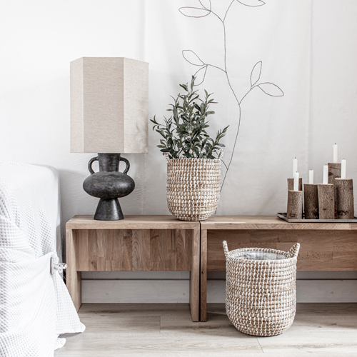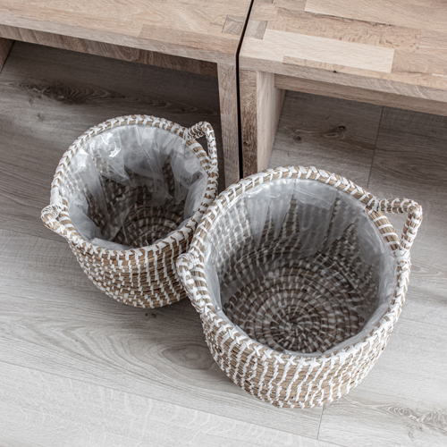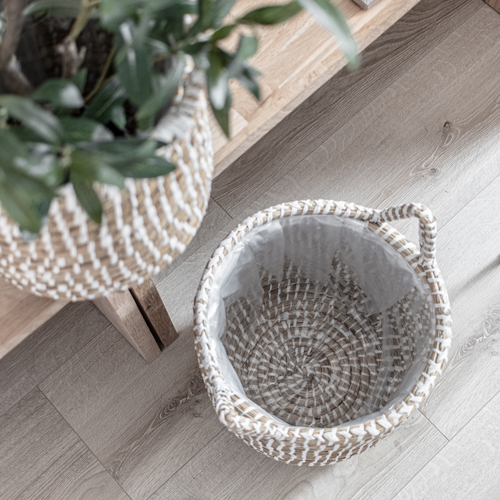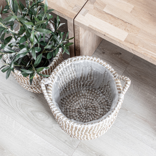 Plantenmanden Set van 2 M Zeegras Naturel-Wit