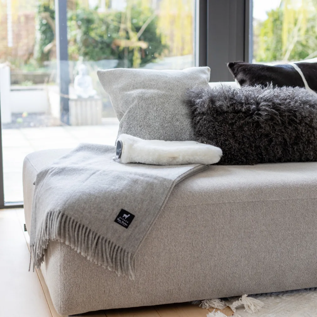 De alpaca plaids komen in verschillende natuurlijke tinten, zoals donkergrijs, lichtgrijsgrijs en bruin en zijn heerlijk op je bed of op de bank.
