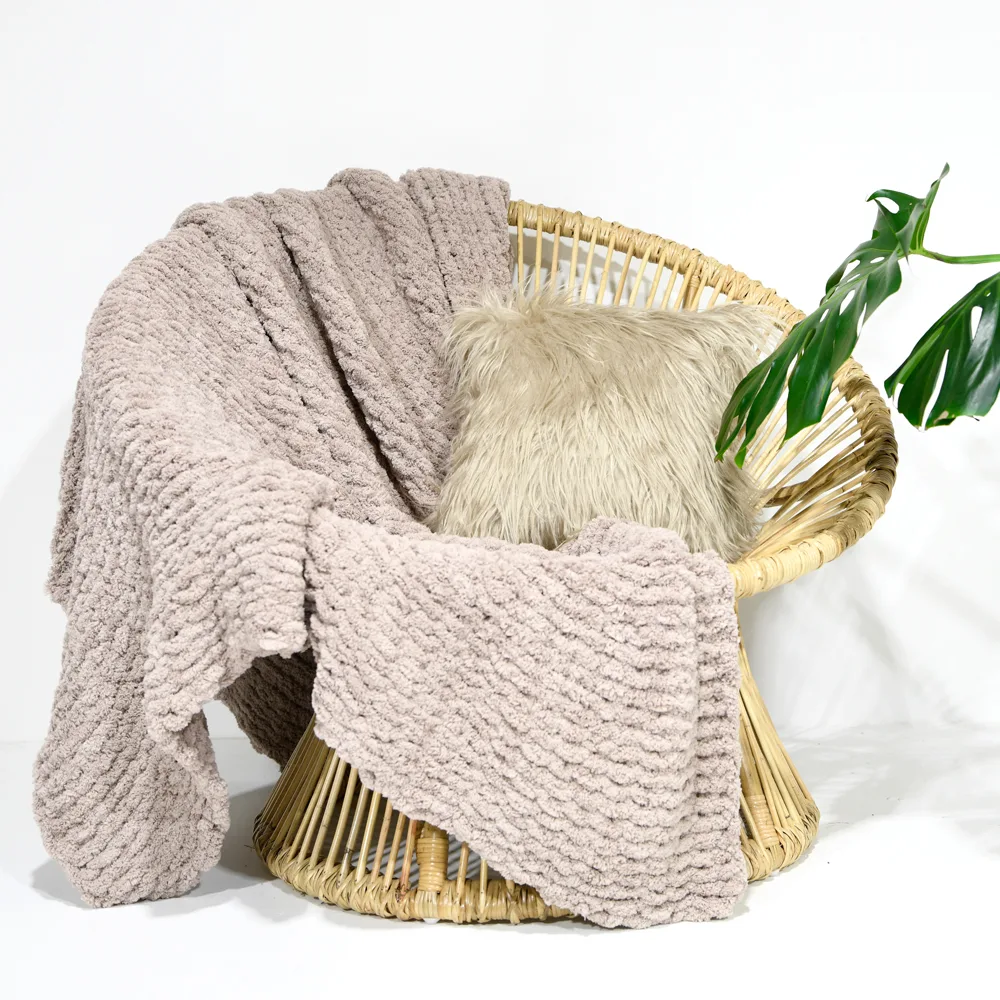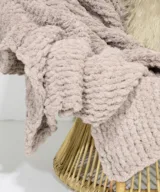 Creëer een warme en knusse sfeer in huis met dit stijlvolle woonplaid in zandkleurig chenille. Dit prachtige kleed is ideaal om de koude winteravonden door te komen. De mix van katoen en polyester biedt een zachte, luxueuze textuur die heerlijk aanvoelt op de huid, terwijl de robuuste kwaliteit zorgt voor langdurig gebruik. Drapeer het over je bank of stoel voor een warme uitstraling en geniet van de comfortabele warmte.