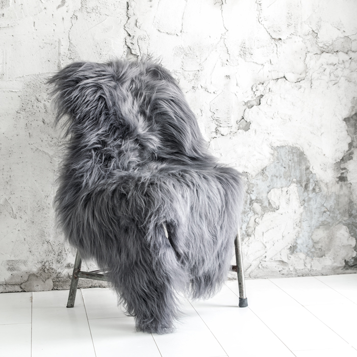 Deze mooie, volle donkergrijze schapenvacht is afkomstig uit Ijsland. De Ijslandse schapenvachten staan bekend om hun hoge kwaliteit en lange haren. Ondanks dat deze vachten langharig zijn, hebben ze nauwelijks last van haarverlies. Daarnaast zijn de Ijslandse vachten erg sterk, slijtvast en hebben ze een mooie glans. De vachten geven een fijne warmte af. Gebruik de schapenvacht daarom op de bank, op een stoel, in een hangstoel of gebruik hem als vloerkleed naast het bed.