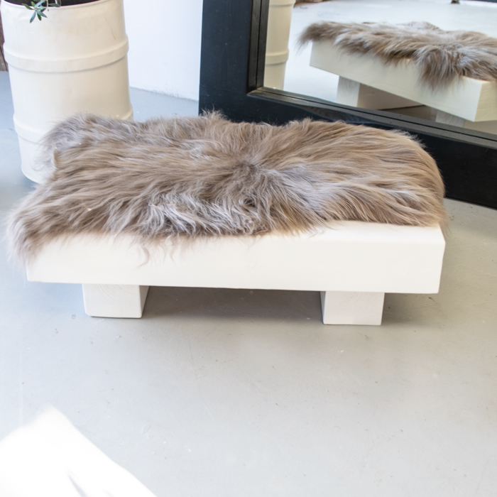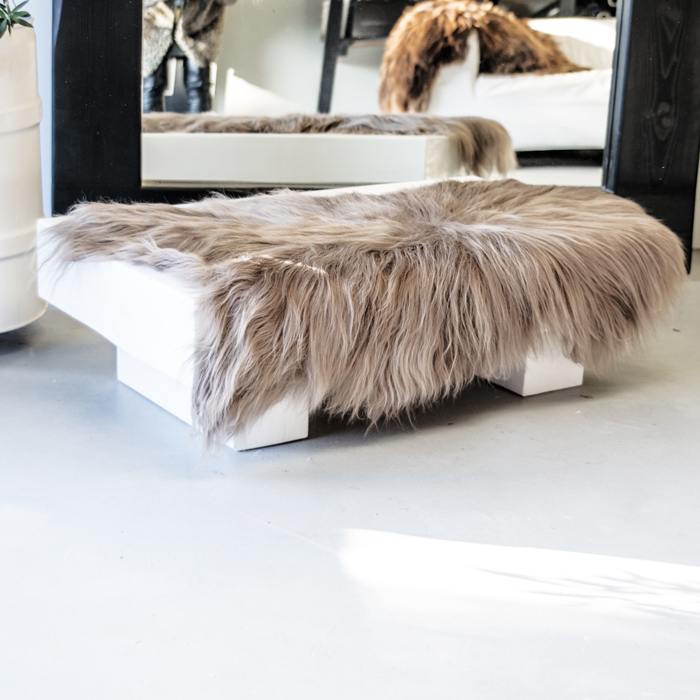 Deze prachtige, taupekleurige schapenvacht is afkomstig van het Ijslandse schapenras de Ijslander. Dit schapenras levert veel mooie, langharige schapenvachten van hoge kwaliteit. De vachten zijn erg sterk, slijtvast en hebben een mooie glans.