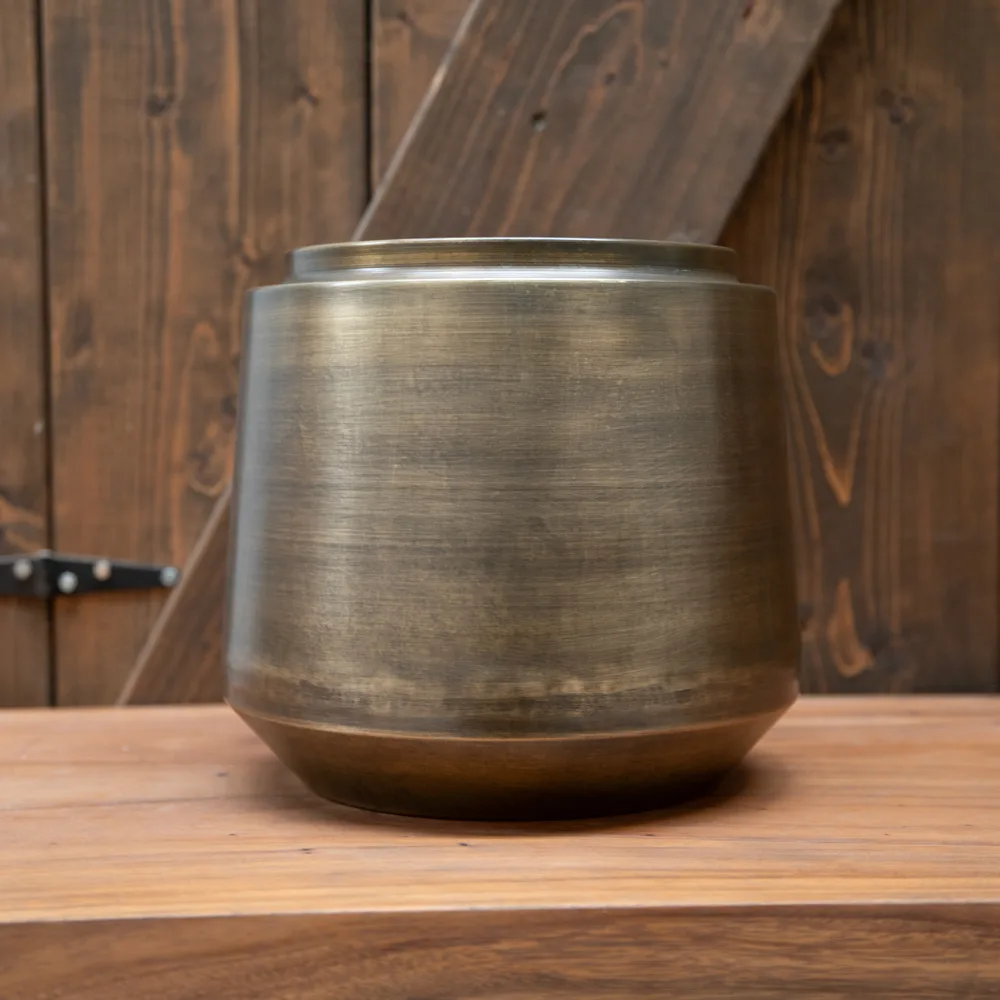 Natuurlijke pracht ontmoet tijdloze elegantie met onze bloempot Jeremy M. Deze plantenpot ademt een onmiskenbaar chique sfeer uit, perfect voor het accentueren van jouw ruimte met een vleugje vintage koperen allure.