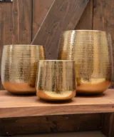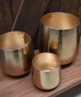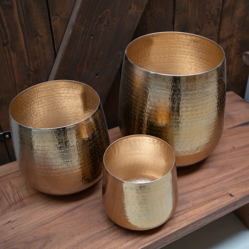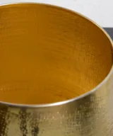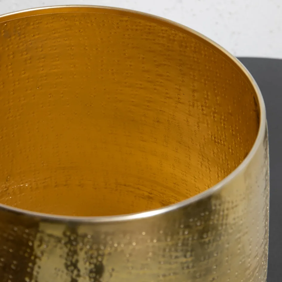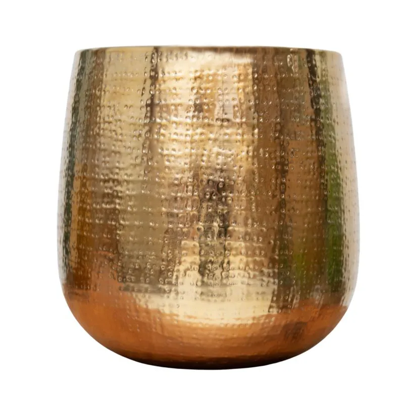 Geef je interieur een stijlvolle boost met de Bloempot Lizzy. Deze trendy goudkleurige plantenpot met een gehamerde afwerking is de perfecte aanvulling voor elke tafel of kast. Gemaakt van duurzaam metaal en ontworpen in een elegante ronde vorm, biedt deze bloempot niet alleen een chique uitstraling, maar beschermt ook je meubels dankzij de meegeleverde tafelbeschermers. Breng de schoonheid en elegantie naar binnen met de Bloempot Lizzy en geniet van een sfeervolle en trendy leefomgeving.