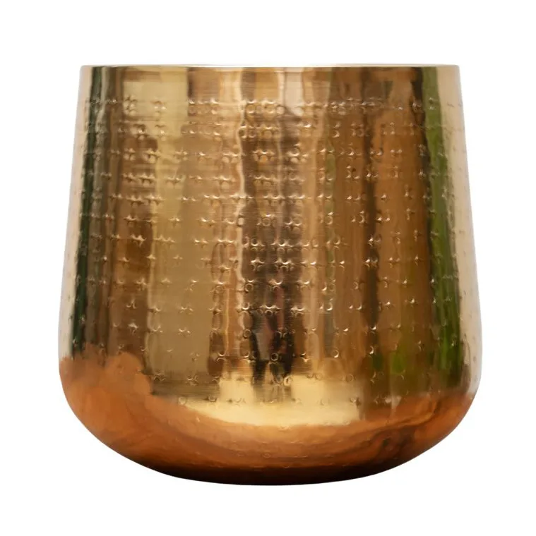 Geef je interieur een stijlvolle boost met de Bloempot Lizzy. Deze trendy goudkleurige plantenpot met een gehamerde afwerking is de perfecte aanvulling voor elke tafel of kast. Gemaakt van duurzaam metaal en ontworpen in een elegante ronde vorm, biedt deze bloempot niet alleen een chique uitstraling, maar beschermt ook je meubels dankzij de meegeleverde tafelbeschermers. Breng de schoonheid en elegantie naar binnen met de Bloempot Lizzy en geniet van een sfeervolle en trendy leefomgeving.