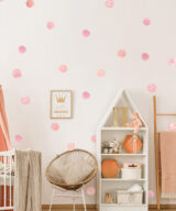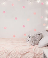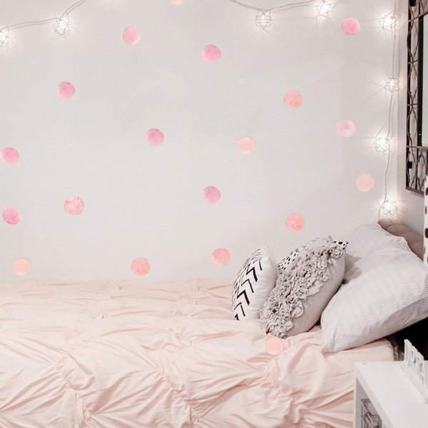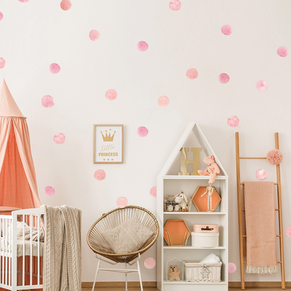De wandstickers in roze van ecologisch PVC zijn waterdicht en gemakkelijk te verwijderen.