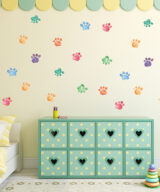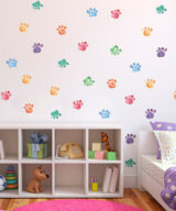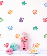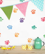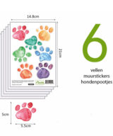 Plak de stickers met afbeeldingen van hondenpootjes op vlakke muren, ramen, meubilair, of gebruik ze voor andere doeleinden zoals knutselen.