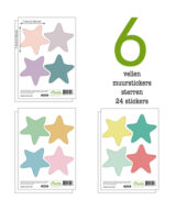 Je ontvangt een pakket van 6 vellen muurstickers in het thema stars, dus 24 stickers in totaal.