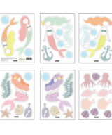 Je ontvangt een pakket van 6 vellen muurstickers in het thema zeemeerminnen, dus 38 stickers in totaal.
