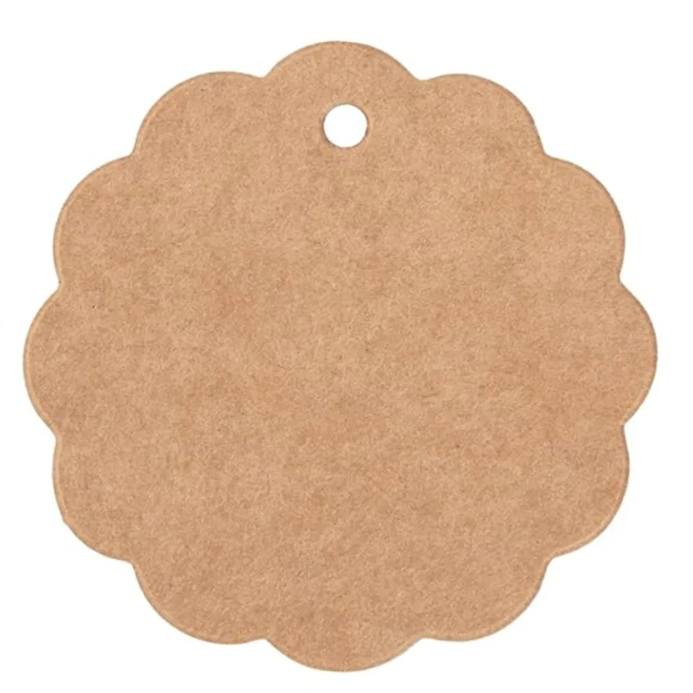 Laat je producten opvallen met onze hoogwaardige bruine prijslabels van stevig karton. Deze ronde labels met voorgestanste gaatjes, hebben een geschulpte rand in bloemvorm en voegen een vleugje natuurlijke schoonheid toe aan je winkelpresentatie. Deze labels tillen de uitstraling van producten naar een hoger niveau. Daarnaast zijn de labels ook perfect voor het geven van cadeau’s.