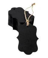 Zwarte klassieke labels voegen een vleugje elegantie toe aan elk product of geschenk. Dit set van 100 geschulpte labels, elk met afmetingen van 5×3 cm, is perfect voor het toevoegen van een verfijnde touch aan je presentaties. Vervaardigd uit stevig karton, zijn deze labels niet alleen sierlijk, maar ook duurzaam.