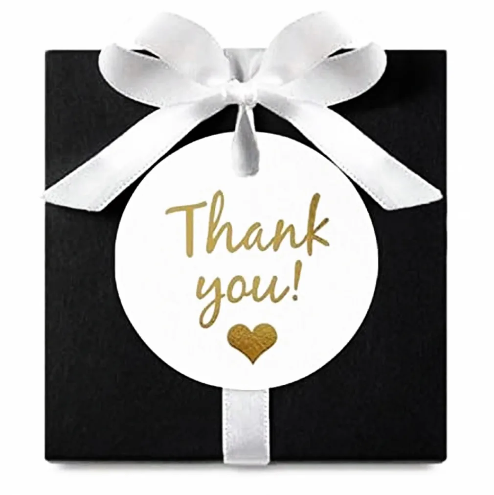 Maak je speciale momenten nog mooier met deze prachtige witte labels met eenzijdige gouden bedrukking met de tekst Thank You, perfect voor elke gelegenheid. Of het nu gaat om een bruiloft, een verjaardag of een andere feestelijke gebeurtenis, onze bedankkaartjes voegen een persoonlijk tintje toe aan je geschenken.