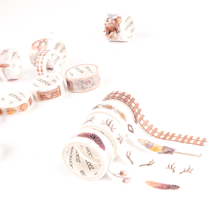 Deze set washi tape komt met de kleuren bruin, licht bruin, donker bruin, rood en oranje.