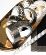 Dit prachtige set van 10 verschillende rollen washi tape in de kleuren zwart, wit en goud is glanzend en heeft een luxe uitsraling.