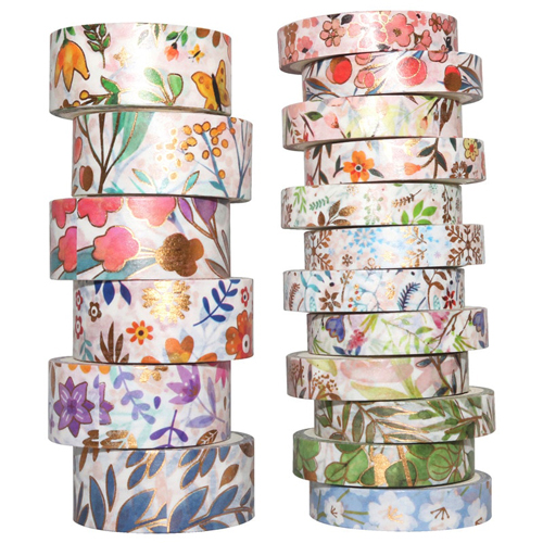 Dit mooie set van 18 verschillende rollen washi tape met een print van bloemen en goudfolie is een mooie aanvulling op je DIY-collectie!