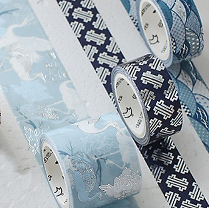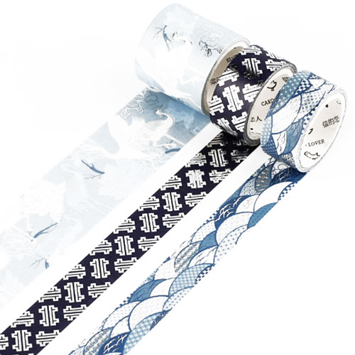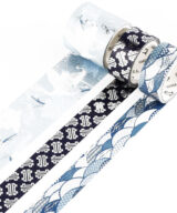 Je ontvangt een set van 3 tapes met verschillende Orientaalse prints met als hoofdkleur blauw.