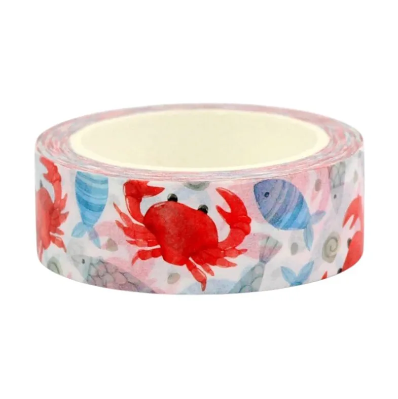 Natuurlijke schoonheid ontmoet creatieve flair met deze Japanse washi tape Sealife set! Verrijk je knutselprojecten met deze prachtige tape, geïnspireerd op de betoverende wereld van de zee. Deze set van 2 rollen, elk met levendige afbeeldingen van krabben en vissen, brengt een speelse twist naar je knutselwerken.