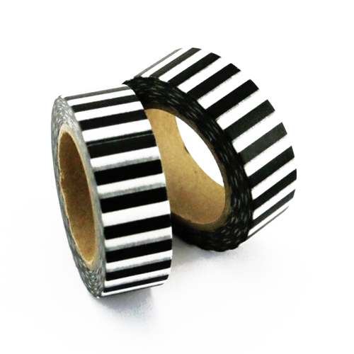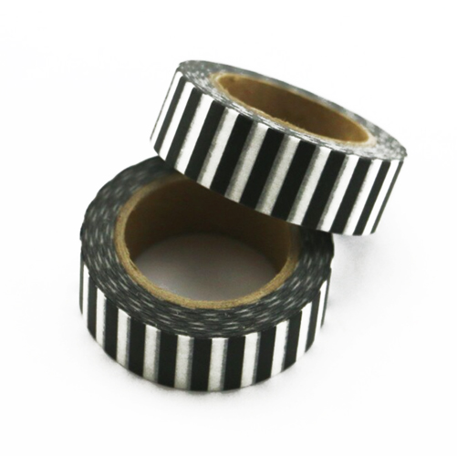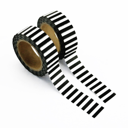 Washi Tape Strepen Zwart-Wit 2 Rolletjes)