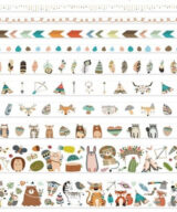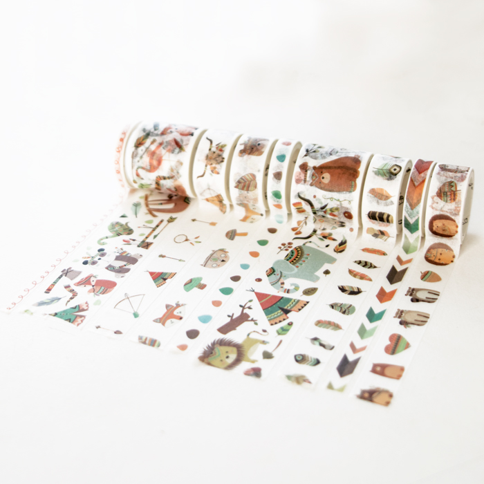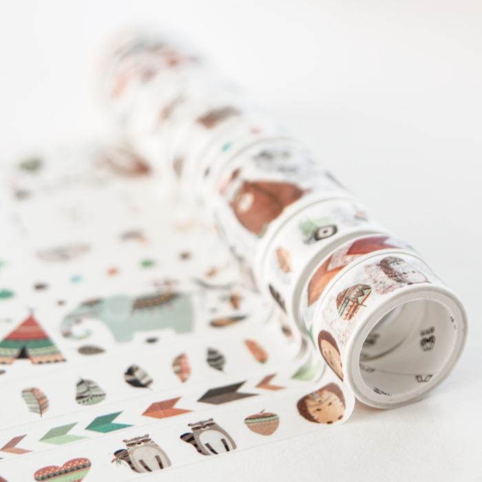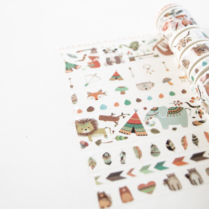 Dit mooie set van 10 rollen washi tape in verschillende tinten en afbeeldingen van veren, dieren uit het indianen thema is erg leuk om te gebruiken voor scrapbooking en bulletjournals!