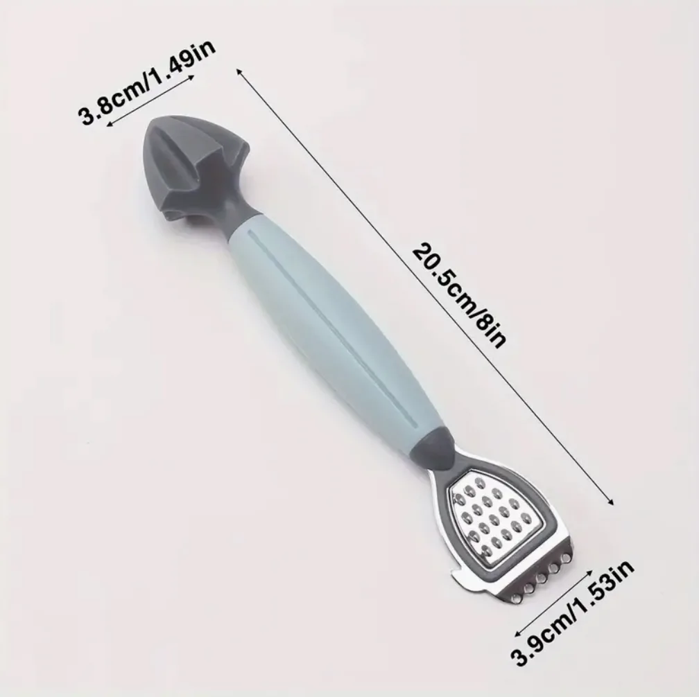 Deze veelzijdige 4-in-1 citruspers is het ultieme keukengereedschap voor liefhebbers van koken en bakken! Met dit handige apparaat kun je niet alleen je citrusvruchten efficiënt persen, maar ook eenvoudig schillen raspen, zesten en flesjes openen. De ergonomische handgreep zorgt voor een comfortabele grip, waardoor je moeiteloos verse sappen, zest en meer kunt creëren.