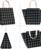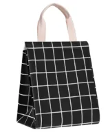 Deze hippe Lunchbag Ruitjes Zwart-Wit met geïsoleerde binnenkant heeft een is voorzien van zwart witte vierkantjes.