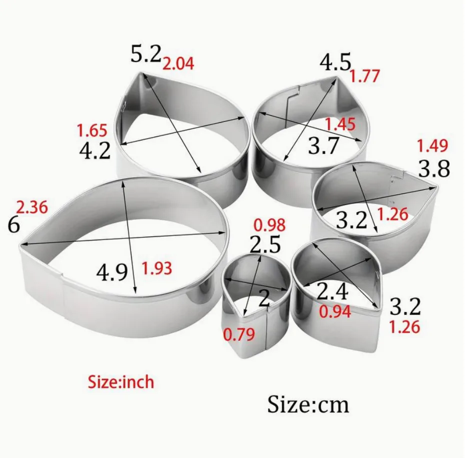 • Set van 6: Onze uitsteekvormen worden geleverd in een set van 6 verschillende maten, waardoor je de vrijheid hebt om te experimenteren en diverse bloemblaadjes te creëren voor je bakcreaties uit bijvoorbeeld chocolade, fondant of marsepein.