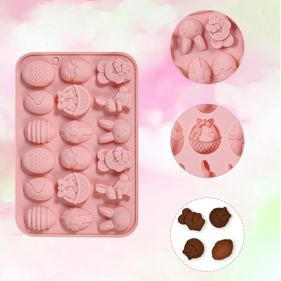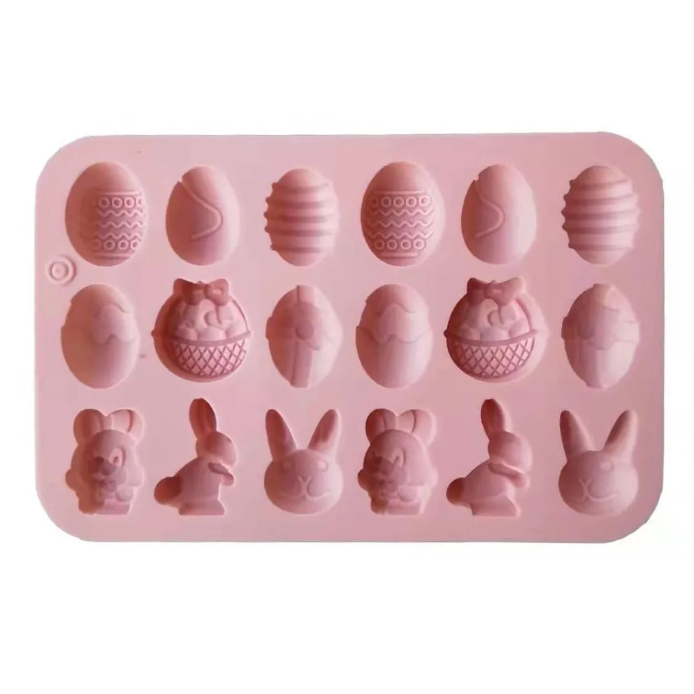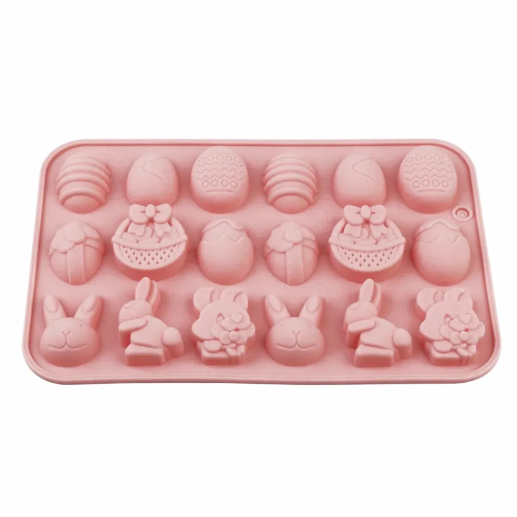 Maak Pasen extra leuk en creatief met deze siliconenvorm met 18 holtes! Perfect voor het maken van chocolaatjes, paaseieren, konijntjes, fondantdecoraties, kleine koekjes en meer. Deze BPA-vrije siliconen mal is ideaal voor bakken, knutselen én koken met kinderen. Dankzij het buigbare en flexibele ontwerp haal je jouw creaties er moeiteloos uit zonder te breken.