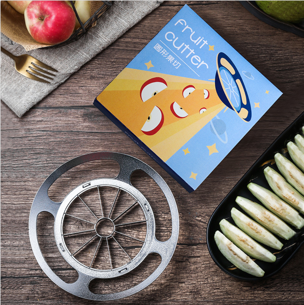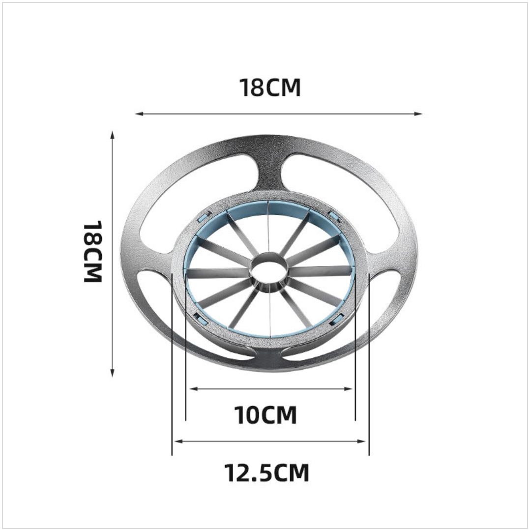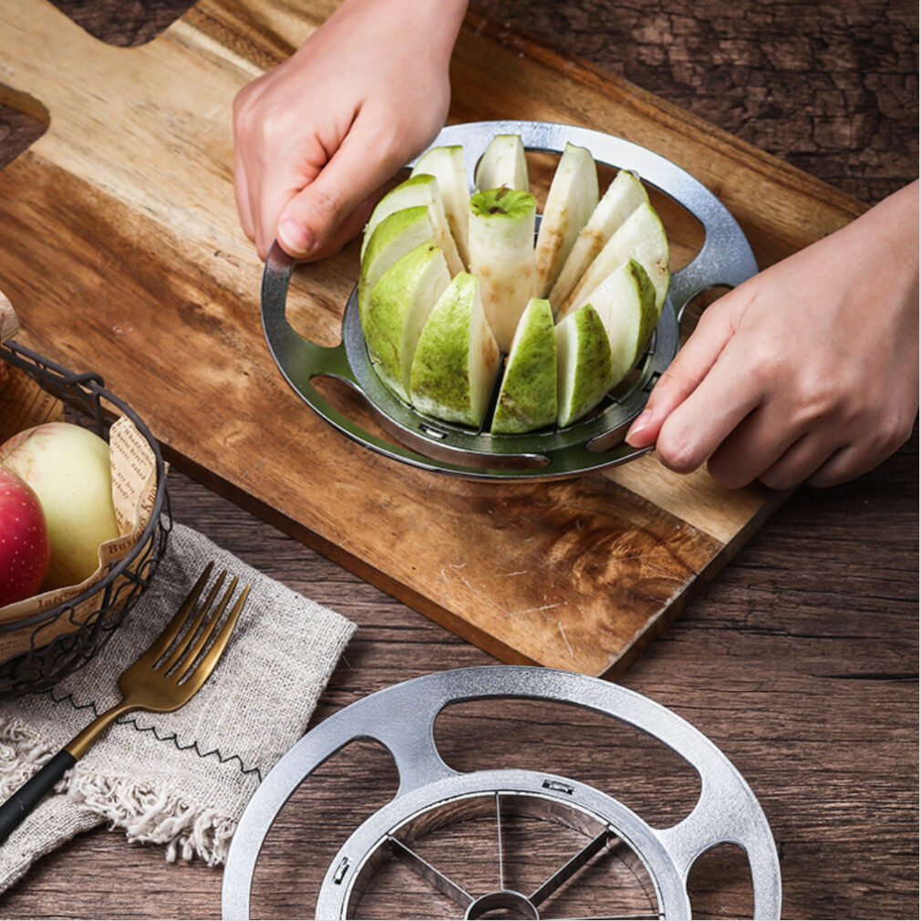 Met dit grote fruitmes snijdt je in 1 beweging 12 partjes uit een hard stuk fruit.
