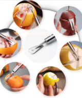 Maak het snijden van sinaasappels makkelijk met deze uiterst handige sinaasappel en citrusschiller! De sinaasappel schiller is perfect voor het schillen en snijden van de grove sinaasappel schil. Naast sinaasappels kun je deze schiller ook voor andere citrusvruchten gebruiken zoals grapefruit, limoenen en citroenen. Je kunt de RVS sinaasappelschiller gemakkelijk opbergen want de handgreep is voorzien van een ophangoog.