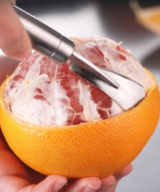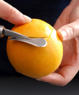 Dit is een schiller van compact formaat met een totale lengte van 17.2 cm. Ook is het voorzien van een scherp gebogen mes waardoor het gemakkelijk om de bolle vorm van een sinaasappel glijdt. Verwijder eenvoudig citrusschillen en witte stukjes schil met dit handige mes!