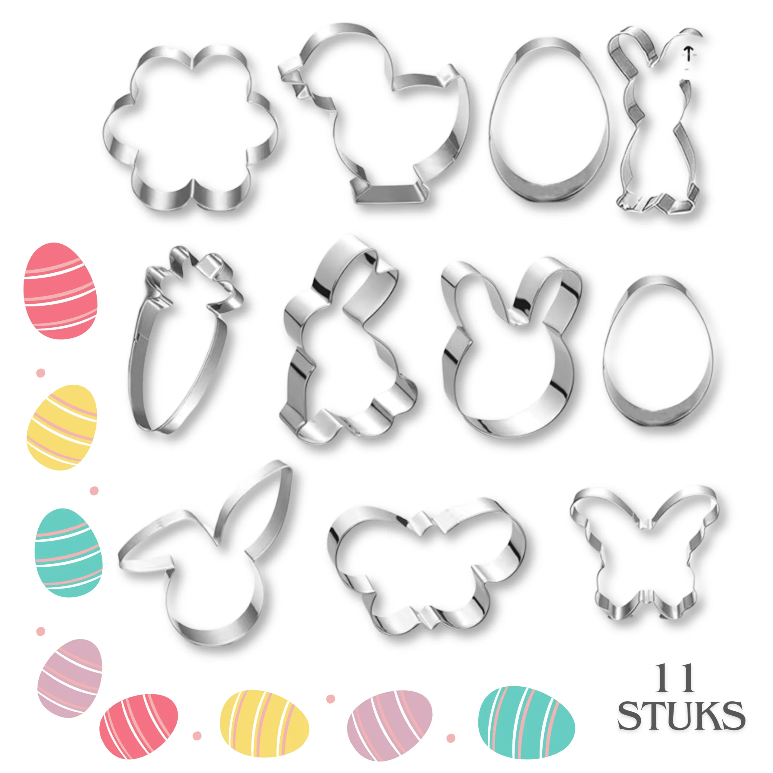 Uitsteekvormen Pasen – Set van 11 stuks | Roestvrij Staal | Vaatwasmachinebestendig