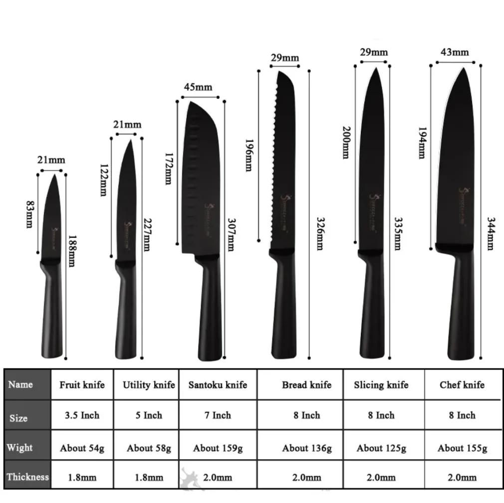 Met dit zeer scherpe Japanse messenset van hoogwaardige kwaliteit in de kleur zwart kun je alle kanten op! De vlijmscherpe messen zijn vervaardigd uit 3cr13 RVS, roesten niet en zijn vanuit hygienisch oogpunt vervaardigd uit 1 stuk, met een ABS-TPR handvat voor een prettige, ergonomische ligging in de hand.