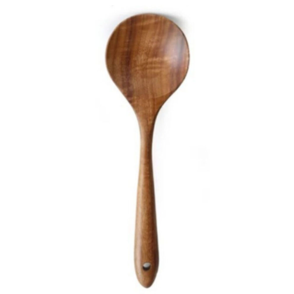 De opscheplepel van teakhout beschikt over een ophangoog.