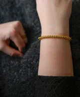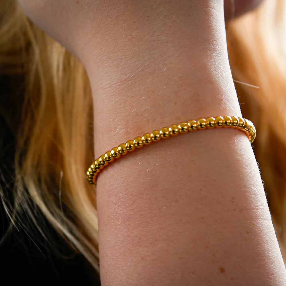 Deze elegante gouden armband met bolletjes is de perfecte aanvulling op je sieradencollectie. Gemaakt van hoogwaardig titanium en voorzien van een luxueuze gold plated afwerking, biedt deze armband een chique uitstraling die elke outfit naar een hoger niveau tilt. De clipsluiting zorgt ervoor dat de armband gemakkelijk is vast te zetten, zodat je deze niet kunt verliezen. Het verfijnde ontwerp met bolletjes voegt een subtiel, maar stijlvol detail toe. Of je nu een feestelijke gelegenheid hebt of je dagelijkse look wilt verrijken, deze gouden armband is een must-have voor elke modebewuste vrouw die houdt van tijdloze elegantie.