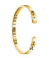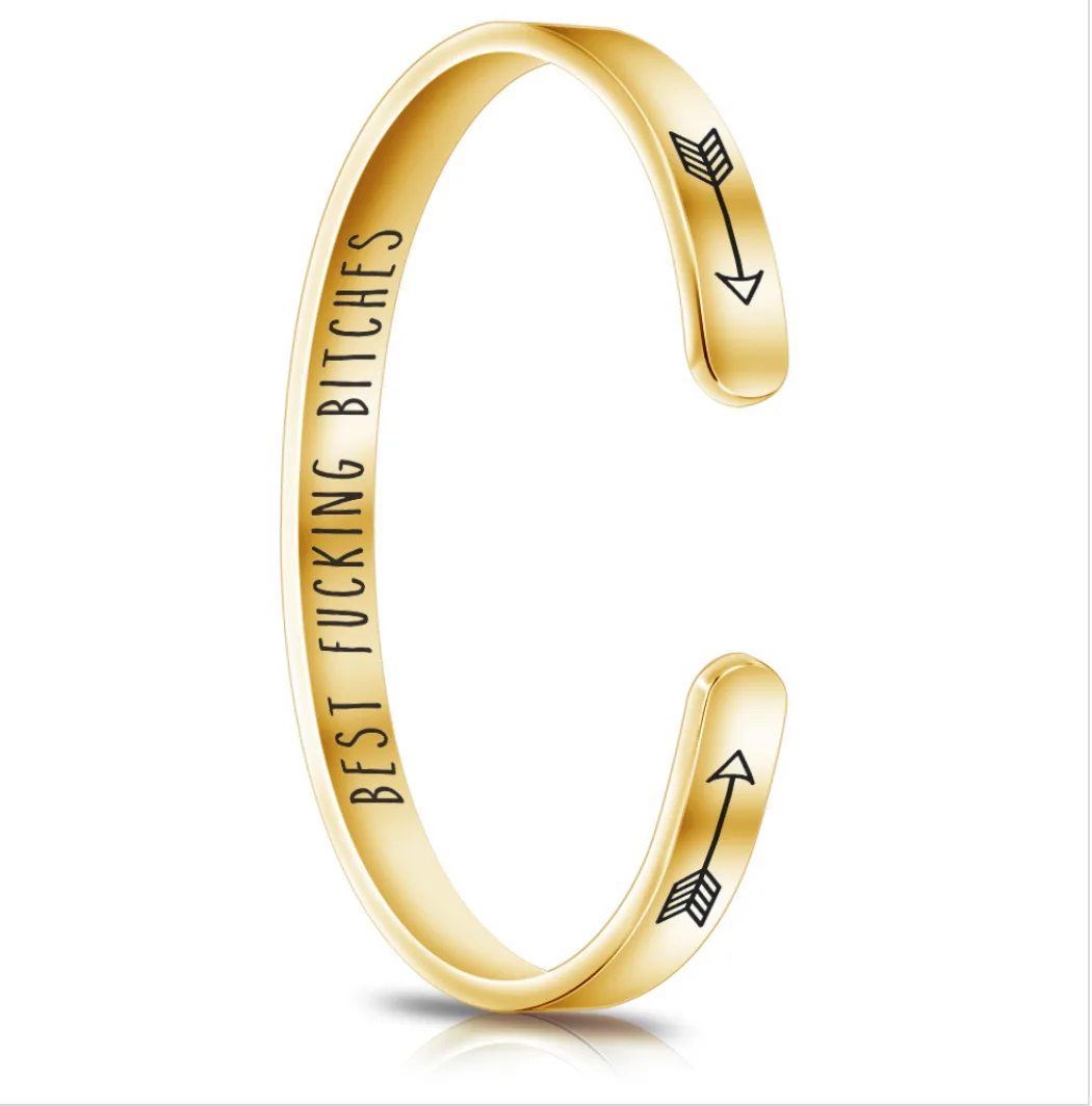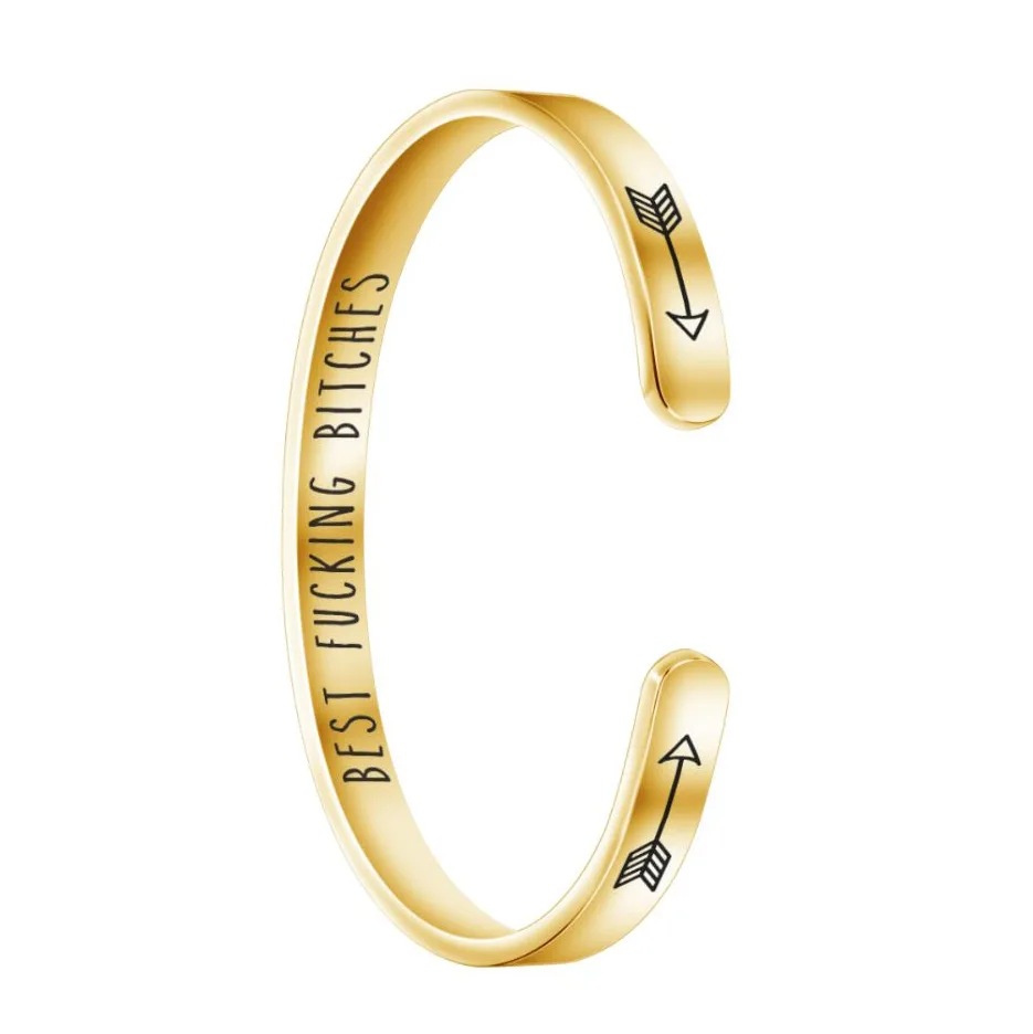 Deze prachtige armband is gemaakt van hoogwaardig roestvrij staal, waardoor hij duurzaam en langdurig is. De ingegraveerde tekst aan de binnenzijde: “Best Fucking Bitches” in combinatie met 2 pijlen aan de buitenzijde maakt hem extra speciaal en grappig.