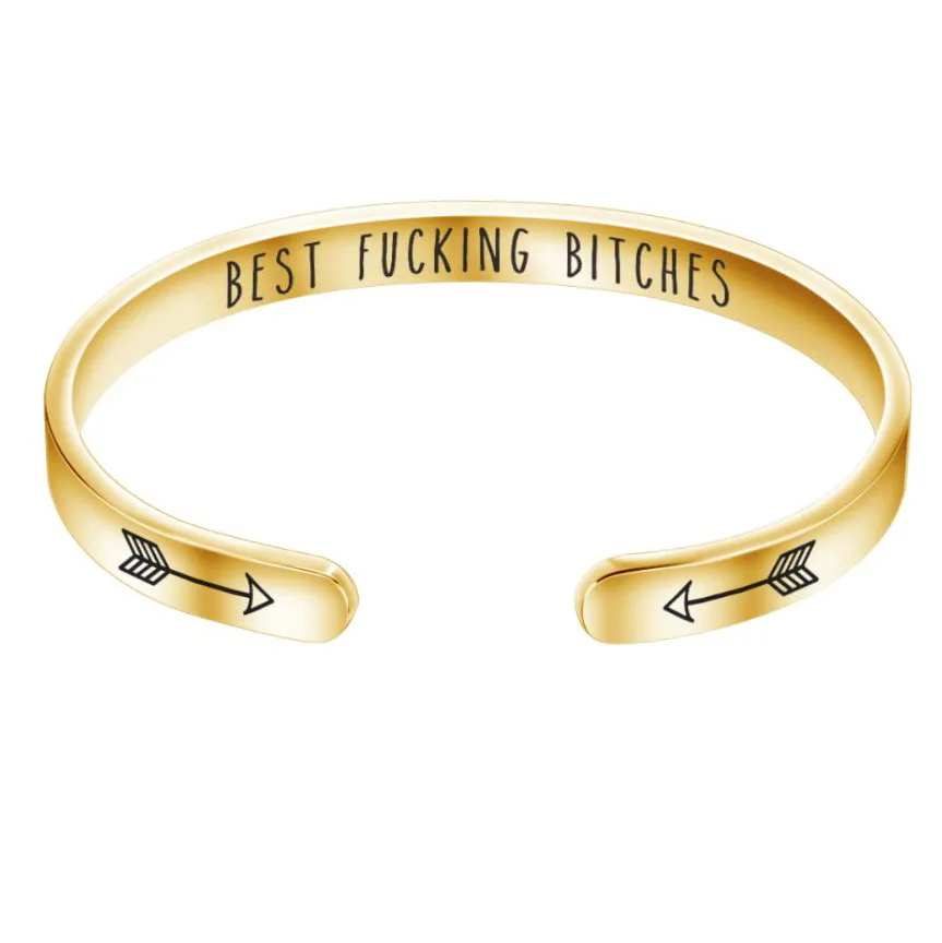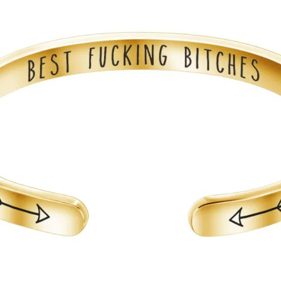 - bangle met ingegraveerde tekst: Best Fucking Bitches