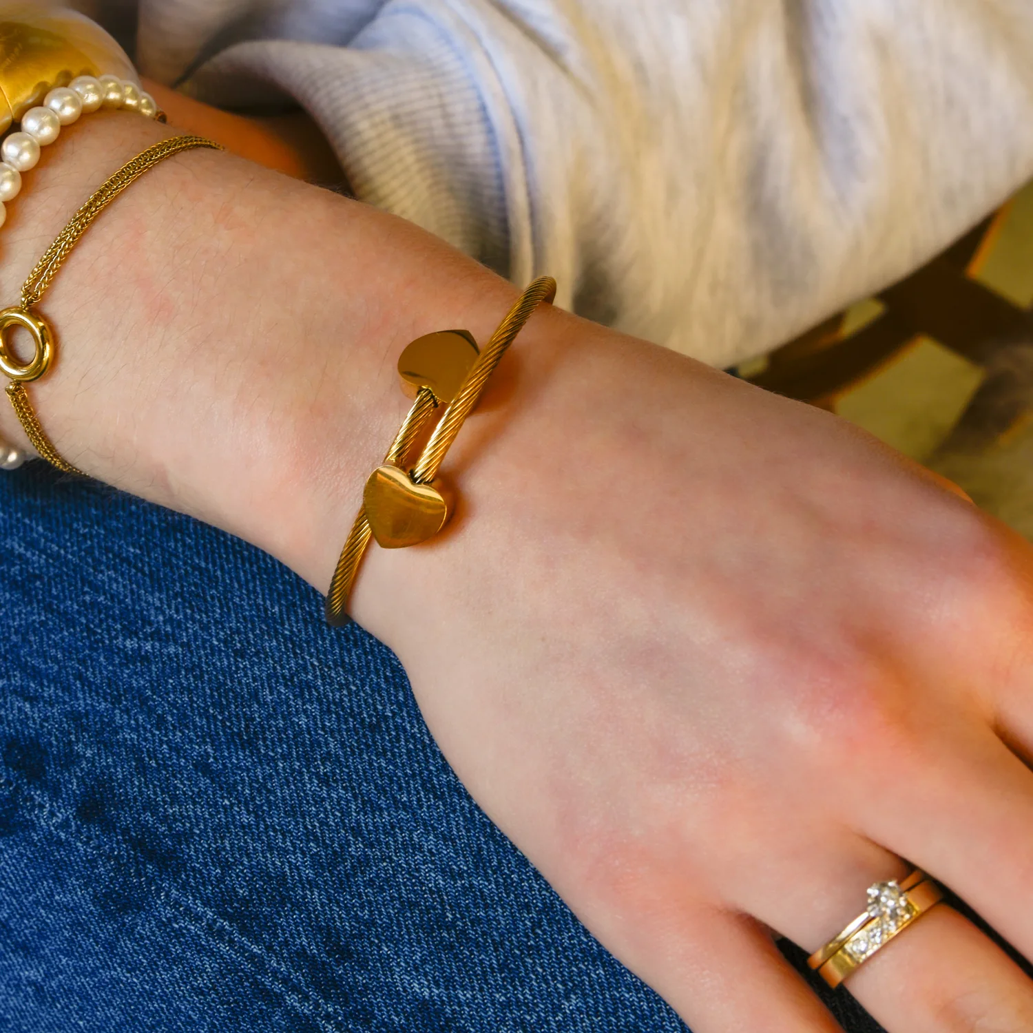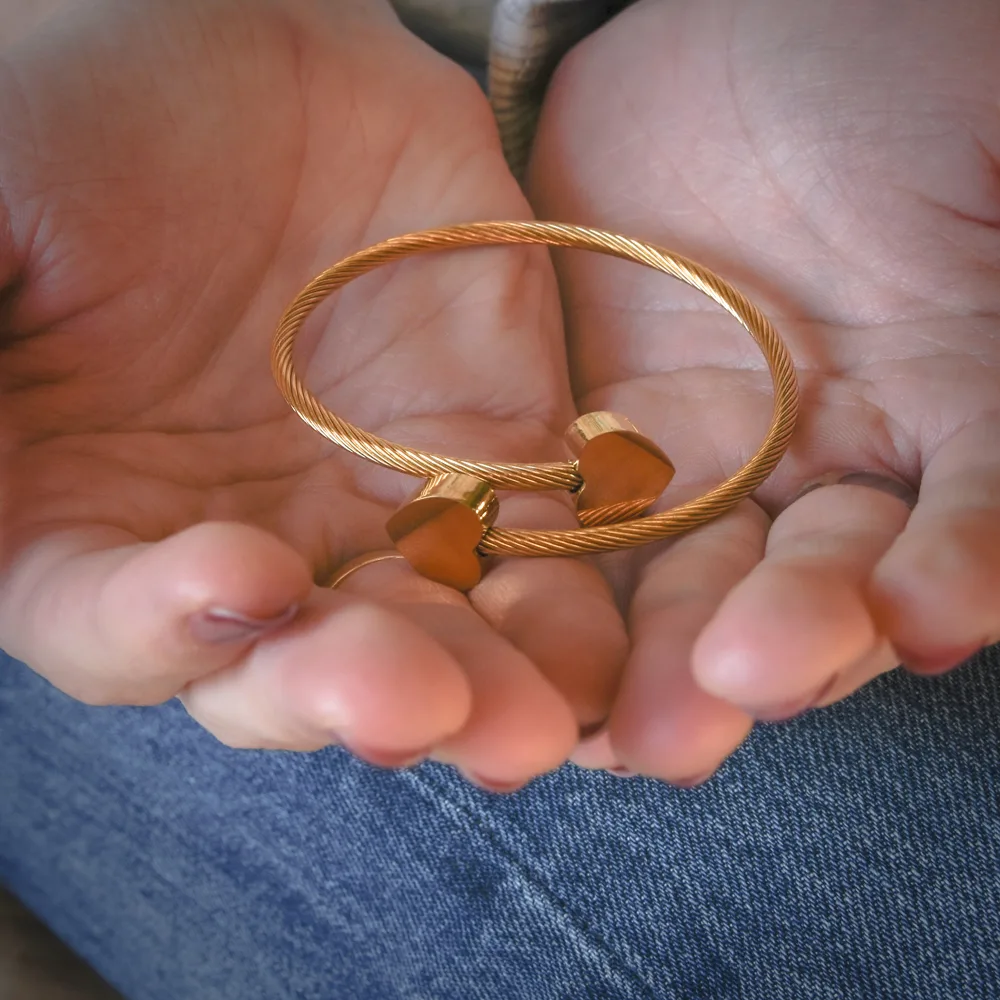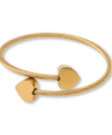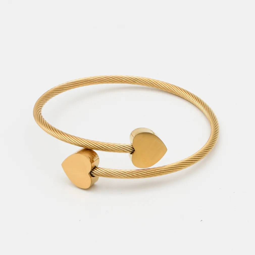 Armband Gold Hearts – Minimalistische RVS Bangle met Twee Gouden Hartjes