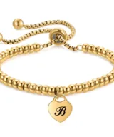 Armband Letter B – Gouden Bedelarmband met Treksluiting en Gouden Bolletjes