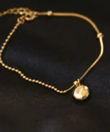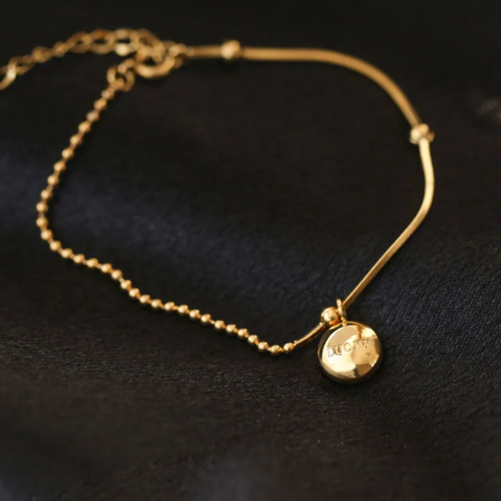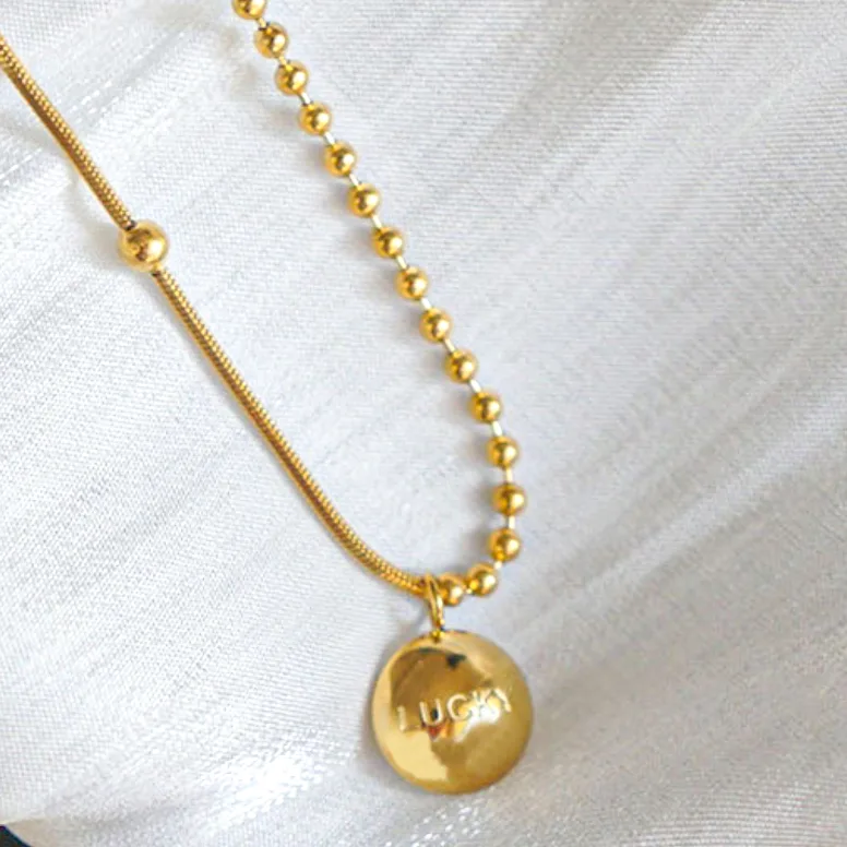 De armband is voorzien van verfijnde gouden bolletjes die een subtiele, chique uitstraling geven. Aan de armband hangt een bedel met het woord “lucky” erop, waardoor het een betekenisvolle en persoonlijke touch krijgt, en daarom leuk is om cadeau te doen aan jezelf, of iemand die wel wat geluk kan gebruiken. Het karabijnhaakslotje maakt het makkelijk om de armband aan en af te doen, terwijl het stevig en betrouwbaar is.