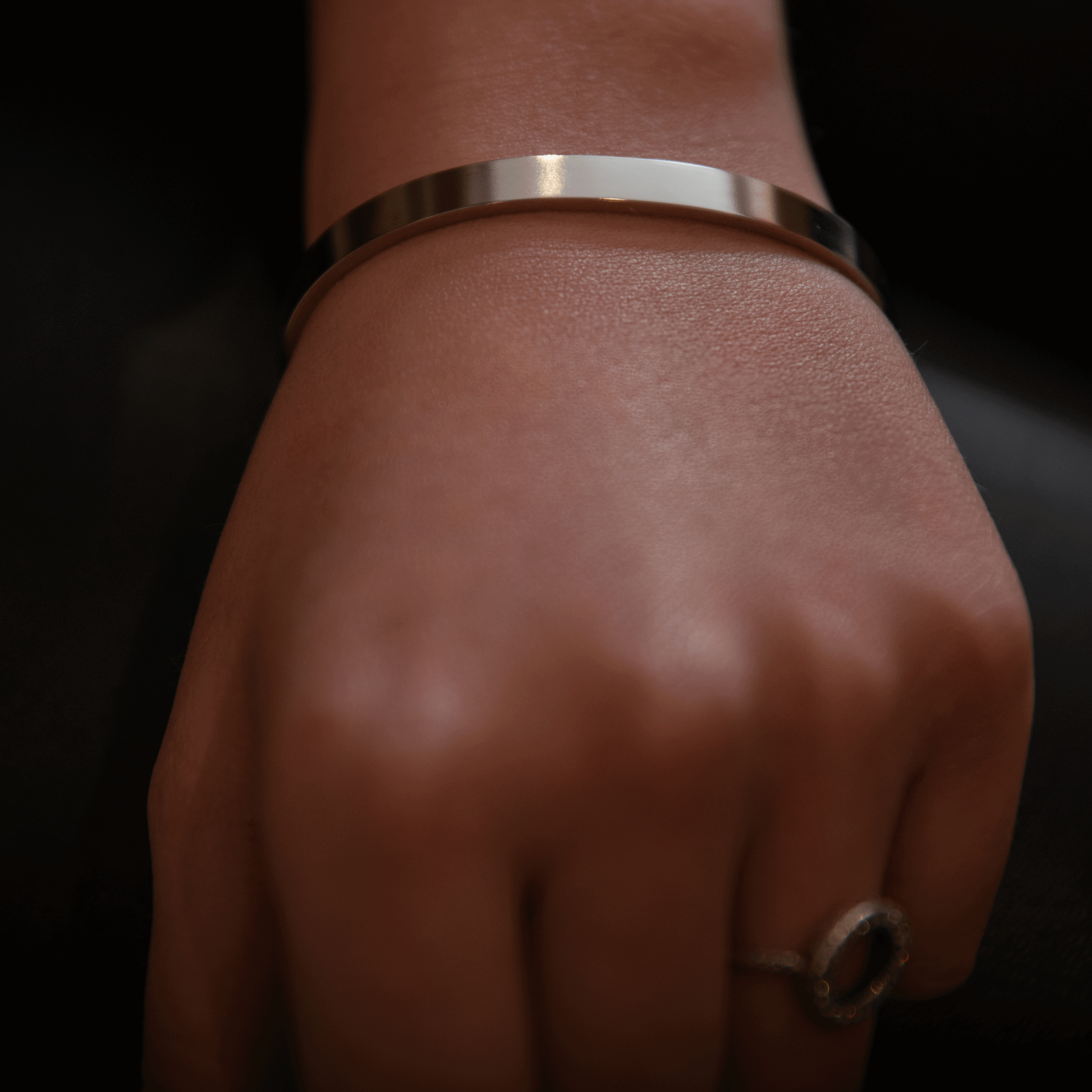 - Bangle: Dit bangle ontwerp maakt het gemakkelijk om de armband om te doen en af te nemen en is licht buigbaar.