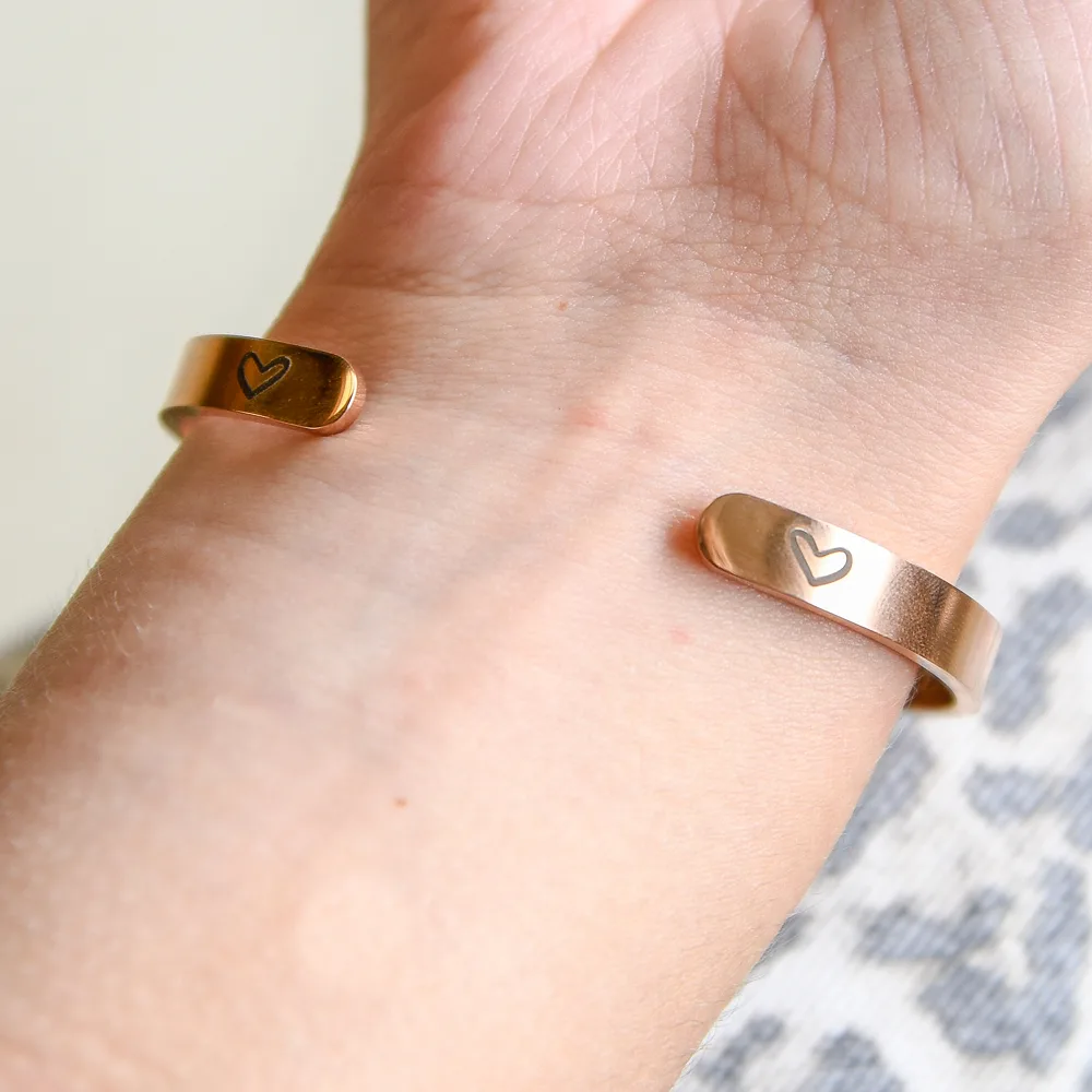 Deze bangle is mooi om te laten zien hoeveel je om iemand geeft, en is perfect om je waardering en liefde te tonen. Het minimalistische design past bij elke outfit en kan zowel casual als chic gedragen worden.