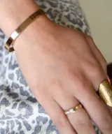 Deze bangle is licht buigbaar, dus kan naar de breedte van je pols gebogen worden.