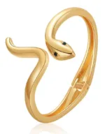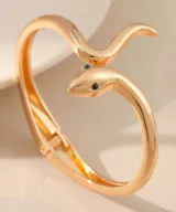 Voeg een vleugje luxe toe aan je sieradencollectie met deze prachtige gouden slangenarmband. Deze stijlvolle dames bangle is gemaakt van hoogwaardig Stainless Steel met een duurzame gouden plating, waardoor hij niet alleen elegant oogt, maar ook lang mooi blijft. Dankzij het handige scharnier is de armband eenvoudig om en af te doen, terwijl het verfijnde slangenontwerp een tijdloze en modieuze uitstraling geeft.