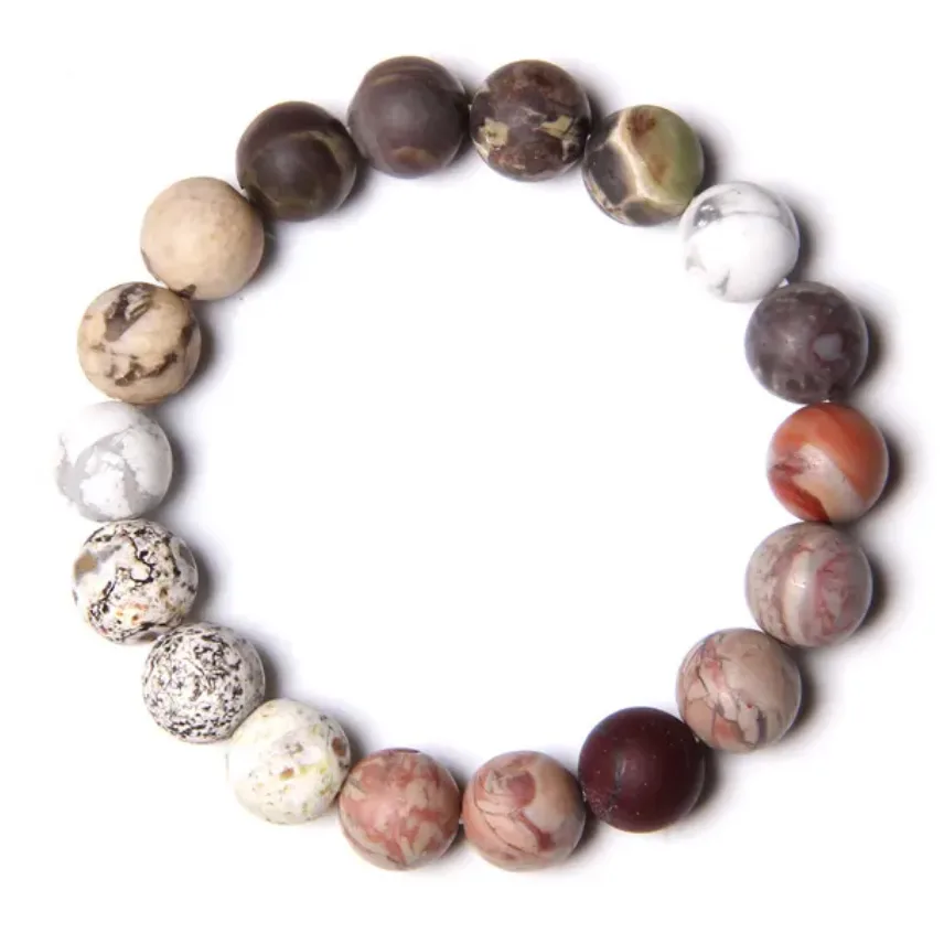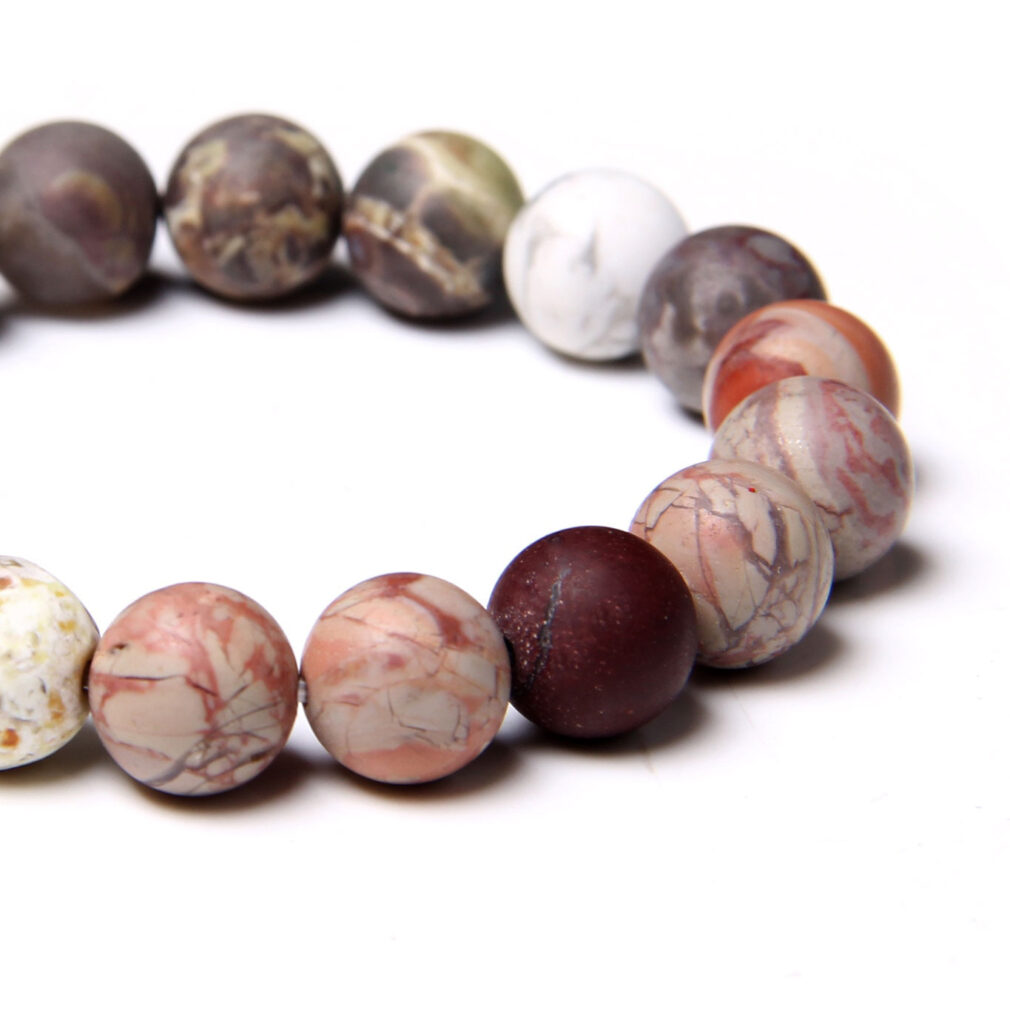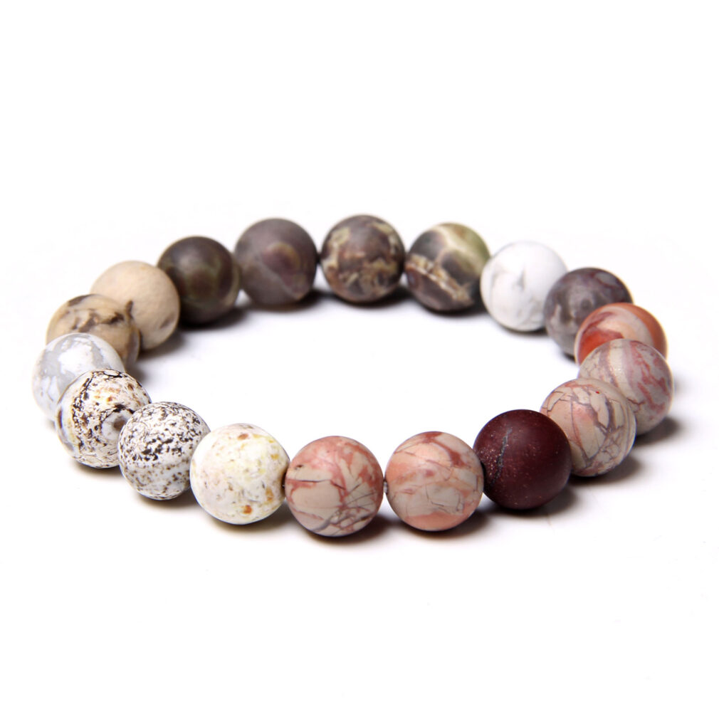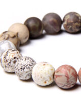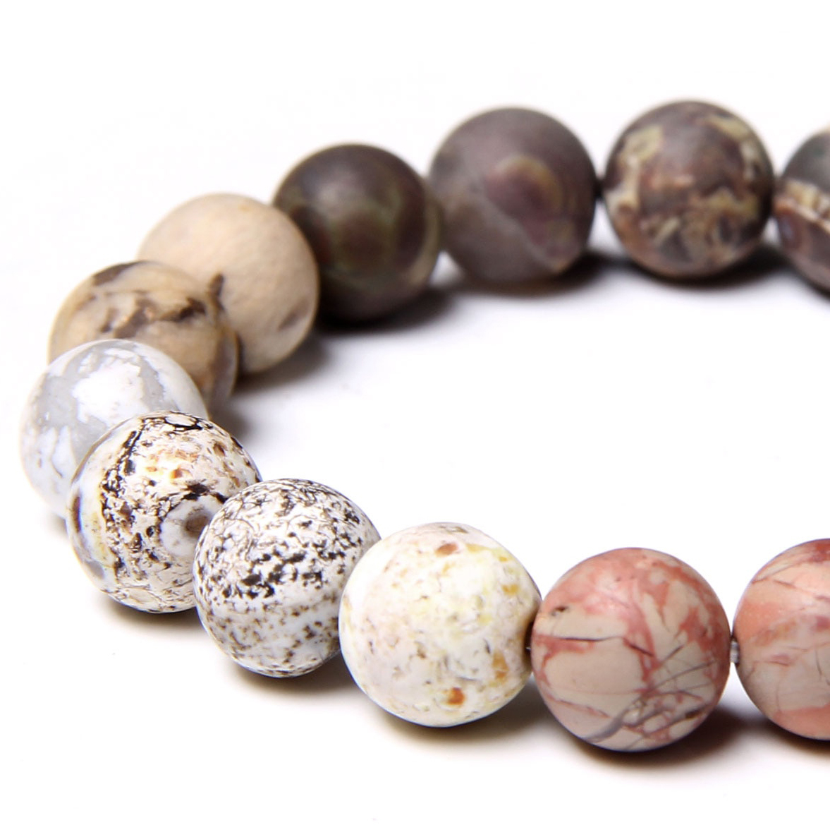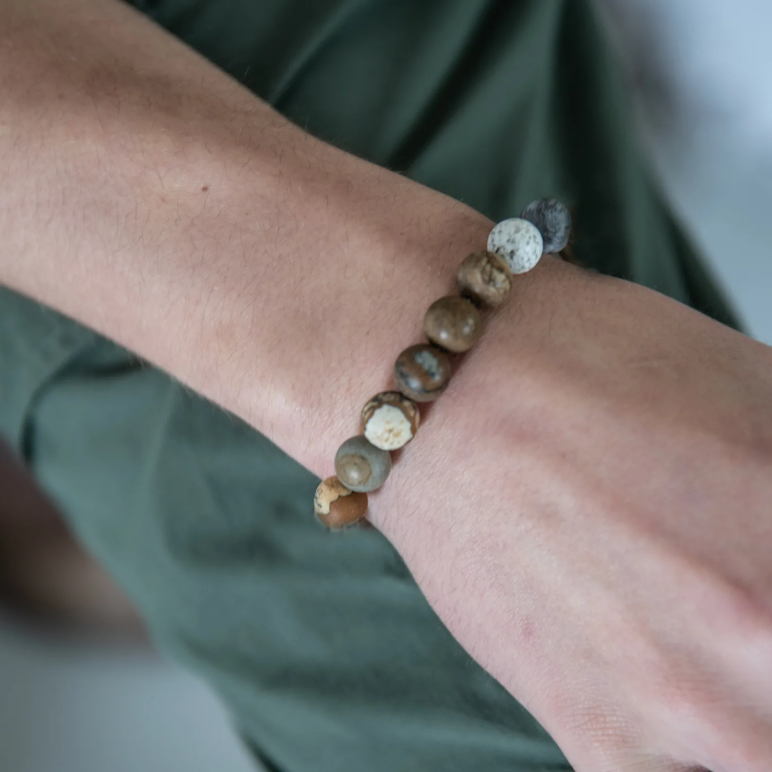 Deze prachtige vegan herenarmband is handgemaakt en voorzien van verschillende ronde kralen vervaardigd uit natuursteen en edelsteen zoals jaspis. De matte kralen zijn geregen op stevig elastiek. Een trendy aanvulling op je outfit! Een natuurlijke uitstraling met een subtiel effect.