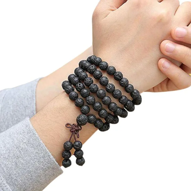 - kralen vervaardigd uit zwart lavasteen