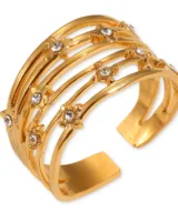 Het subtiele maar opvallende opengewerkte design met minimalistische strasssteentjes, geeft de ring een moderne en verfijnde look. Dankzij het verstelbare ontwerp past deze ring comfortabel om iedere vinger. Perfect om solo te dragen of te combineren met andere ringen voor een trendy ringen stack!